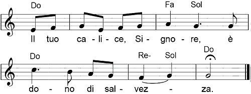 | Rit. | Questo è il corpo che è dato per voi questo calice è la nuova alleanza nel mio sangue ch'è versato per voi fate questo in memoria di me. |